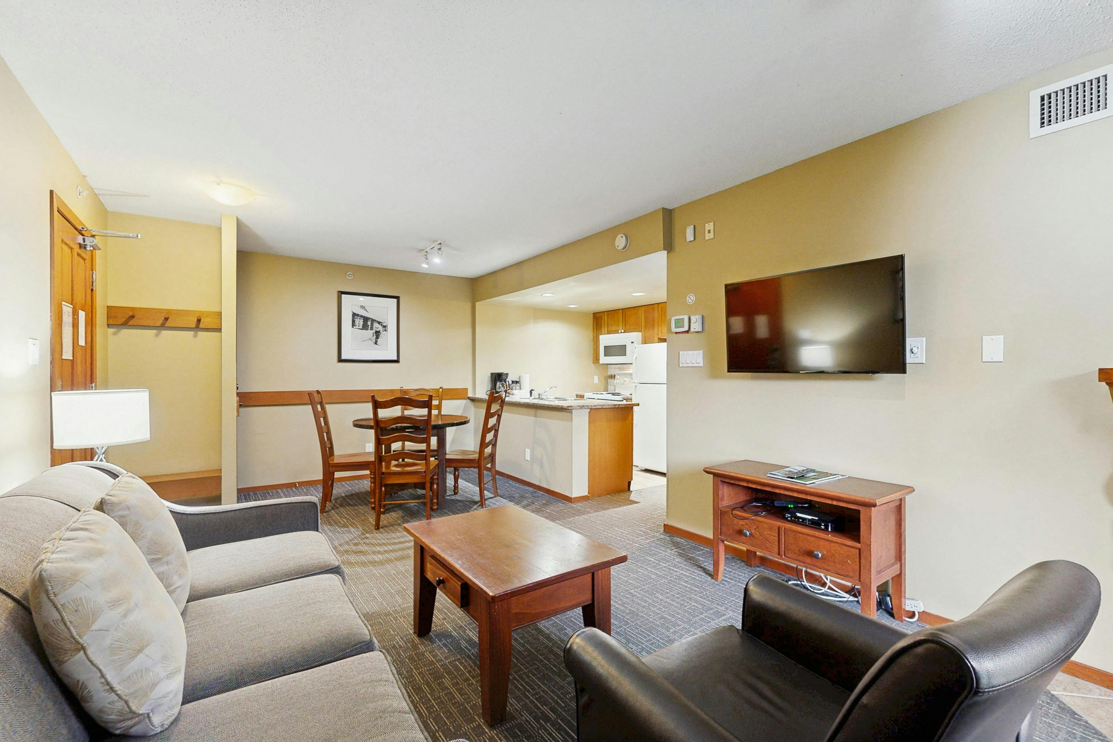 Back at the Cascade Lodge, you can enjoy great amenities like the largest heated outdoor pool in Whistler, surrounded by a beautifully landscaped courtyard. A soak in one of two shared hot tubs is the perfect way to wind down after a long day on the slopes or hiking trails. If you’re looking to elevate your heart rate, the on-site exercise facility is just the ticket—there’s even a sauna to relax in after your workout.